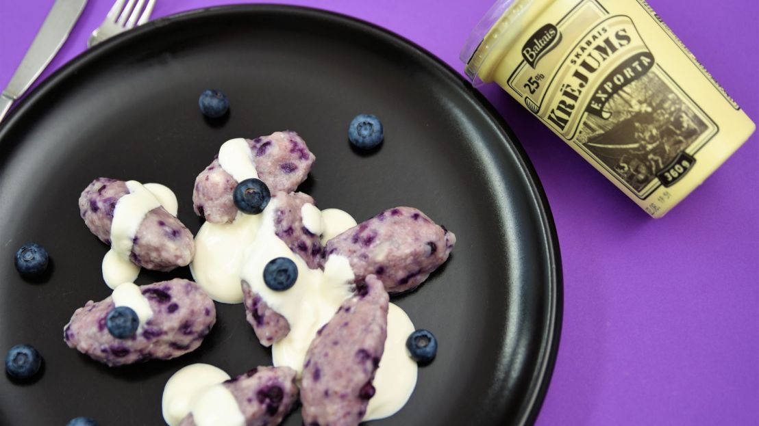 Biezpiena un melleņu klimpas ar skābu krējumu.